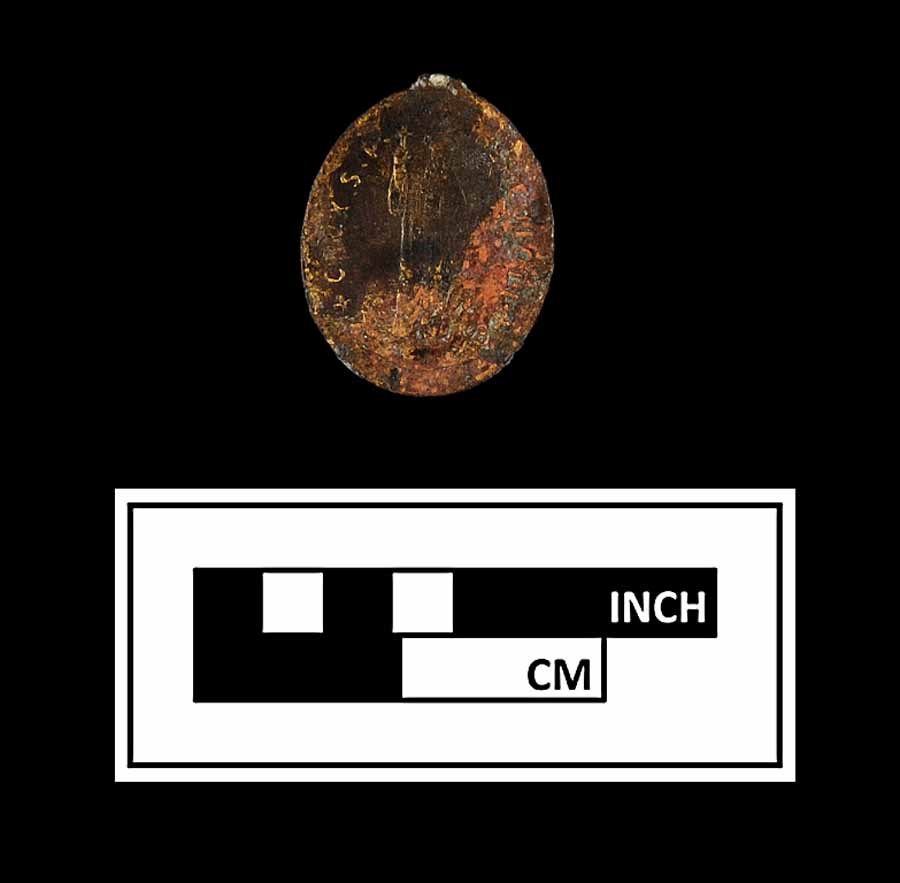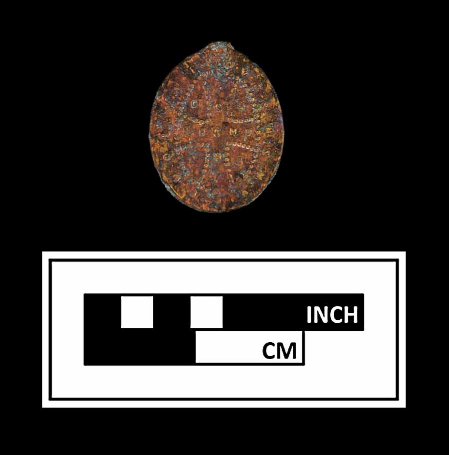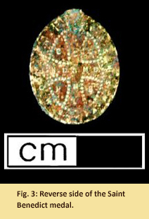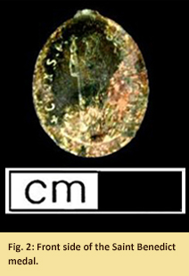 An especially interesting artifact in the Johnsontown assemblage is a copper alloy St. Benedict