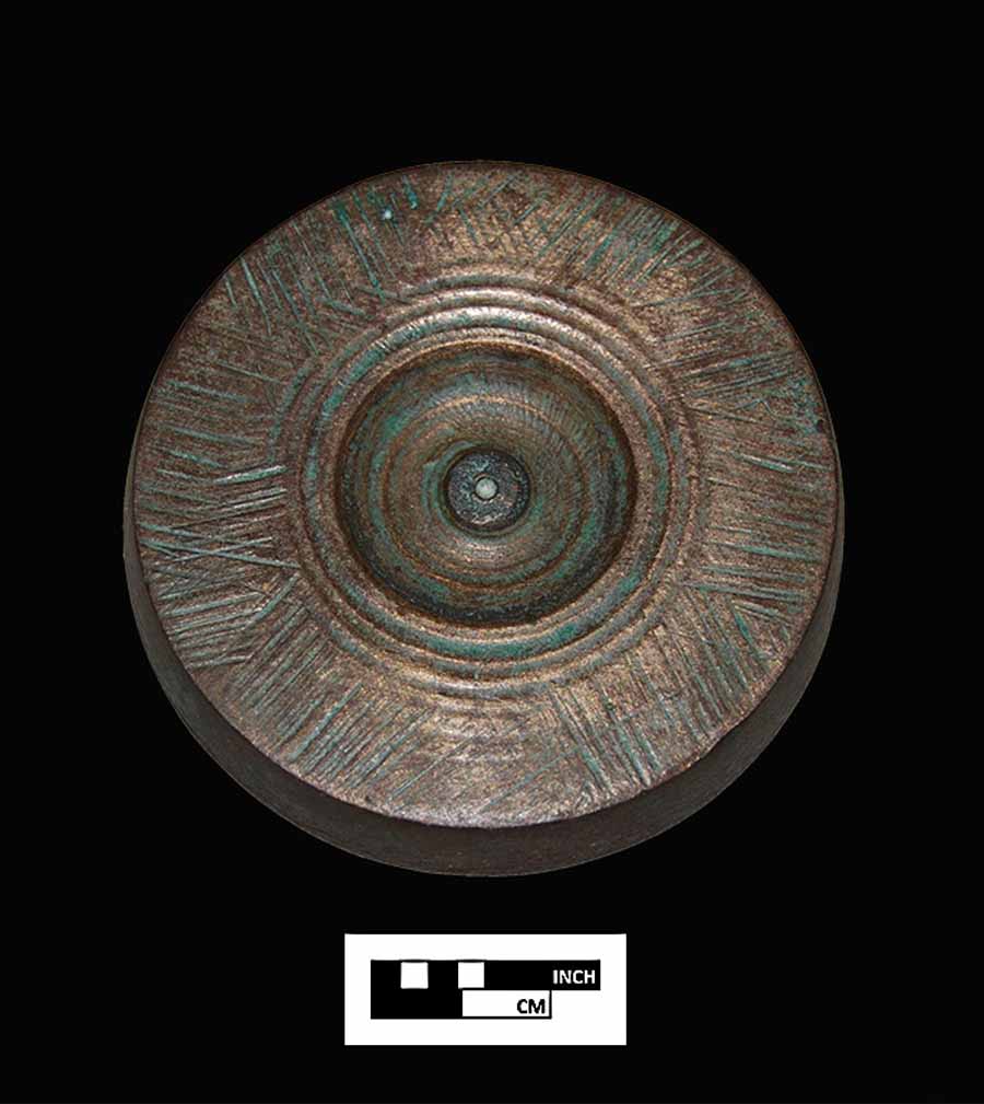 elaborately decorated ivory walking stick handle was also recovered. A copper alloy sundial fragment