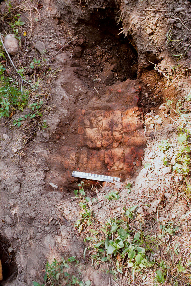 The fireplace at the south end of the cellar was "indicated by a large quantity of unarticulated red brick, the